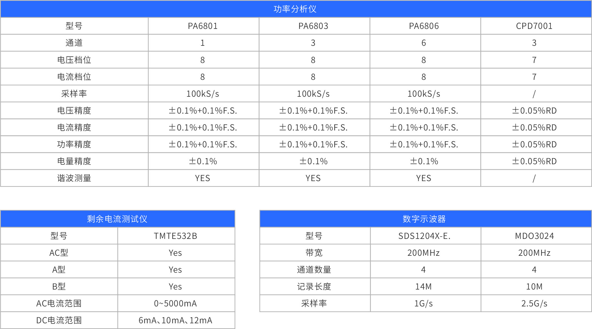 规格表