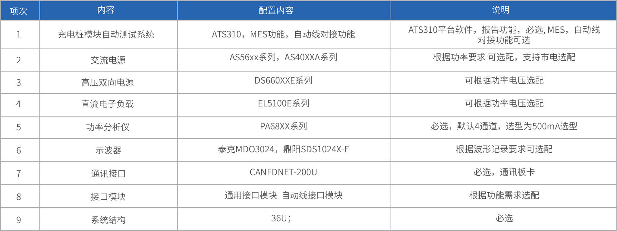 充电桩模块功能测试系统ATS310,专用于各种高压充电桩模块、双向充电桩模块、低压充电桩模块的电气特性的测试系统。依据GB/T18487、NB/T33001、NB/T33008等国家标准建立并优化标准测试项目,测试速度快,系统运行稳定,操作简易。可根据功率选配不同功率等级设备,支持高压、低压、双向等多种产品。其模块化功能设计可以满足生产、研发、品质测试。