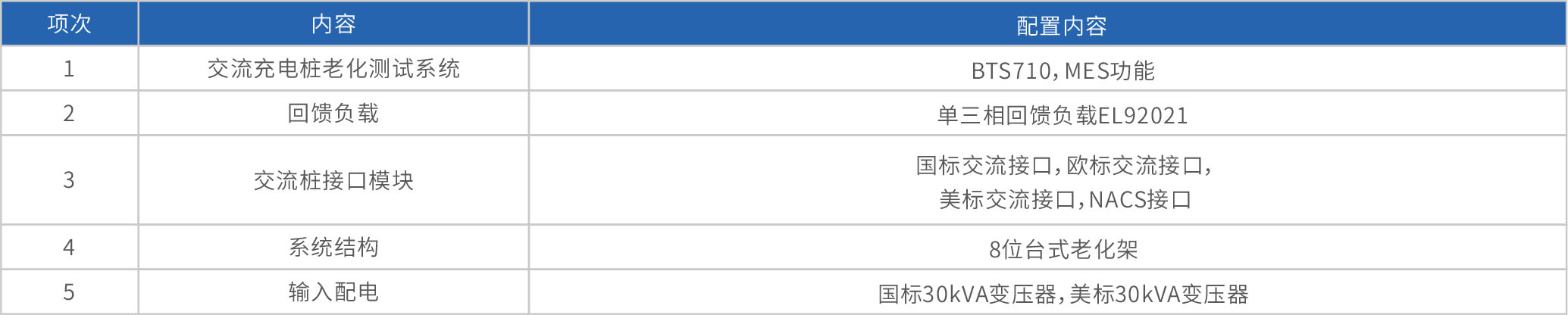 交流充电桩台架式常温老化系统BTS710,主要应用于交流充电桩老化测试等,可选配不同标准接口,支持国标、欧标、美标等标准交流充电桩。为离线常温老化应用设计,可以满足客制化生产测试。