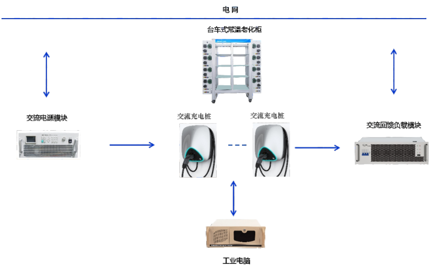 • 交流桩8工位串联标准化台架台车结构,支持串联扩展