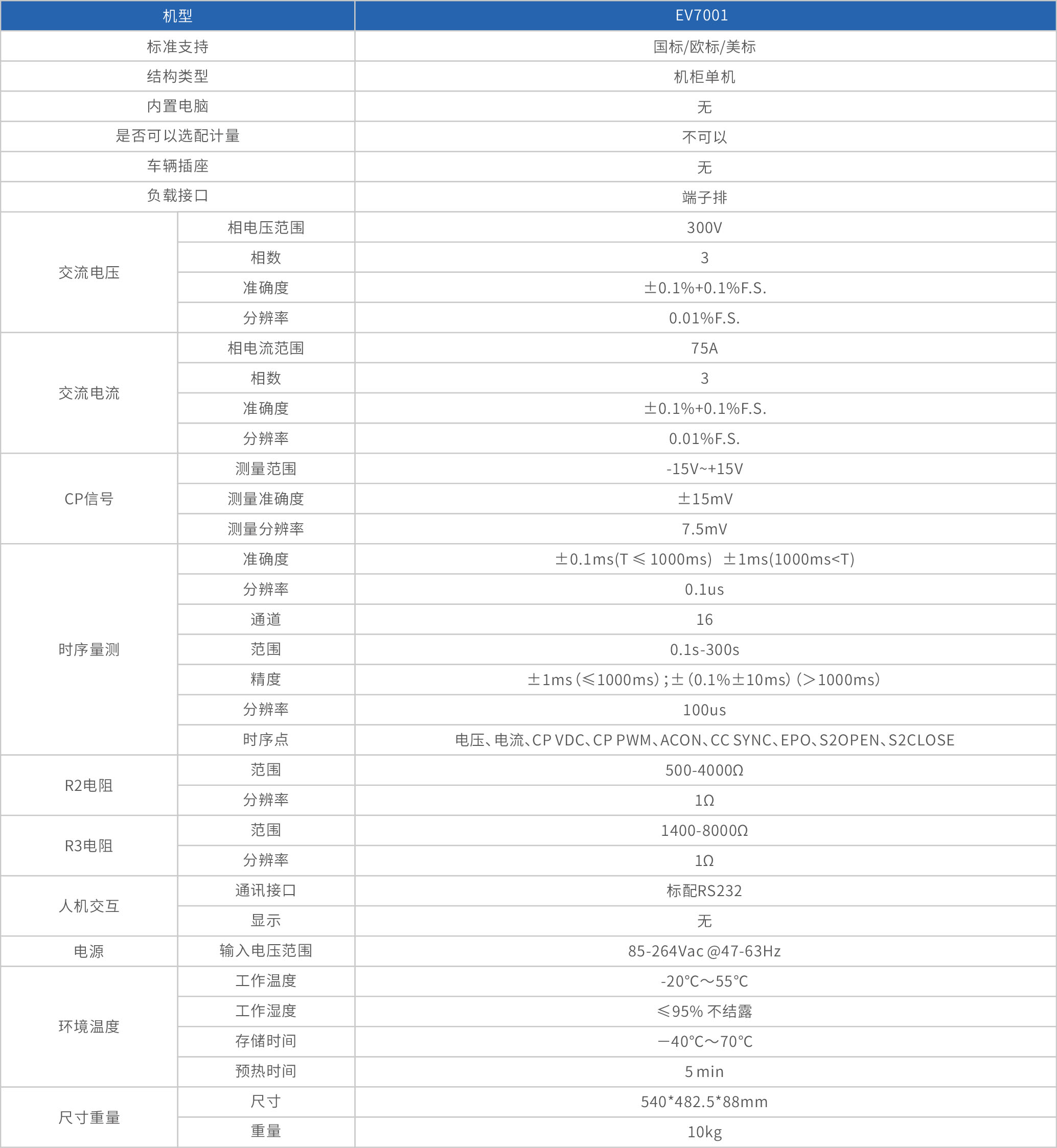 • 可选配国标、欧标、美标测试功能及对应的车辆插座。