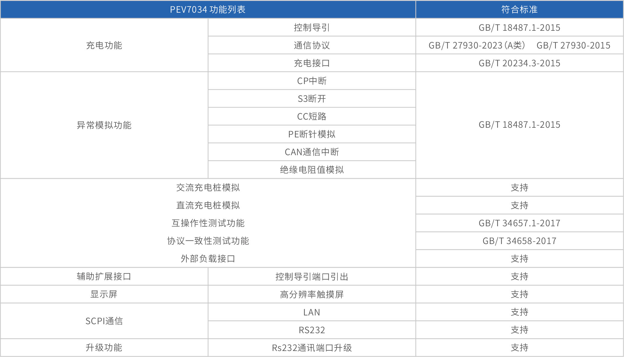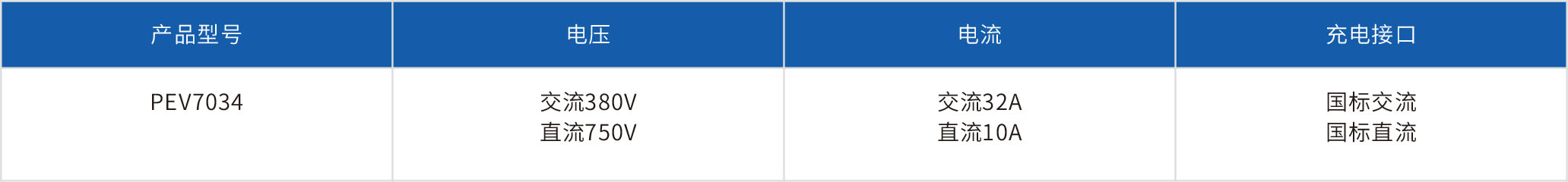 PEV7034内置控制交直流充电控制导引线路模块、直流功率模块、交直流电压电压采样模块、充电异常模拟模块、时序量测模块、通讯控制模块、触屏显示模块等。