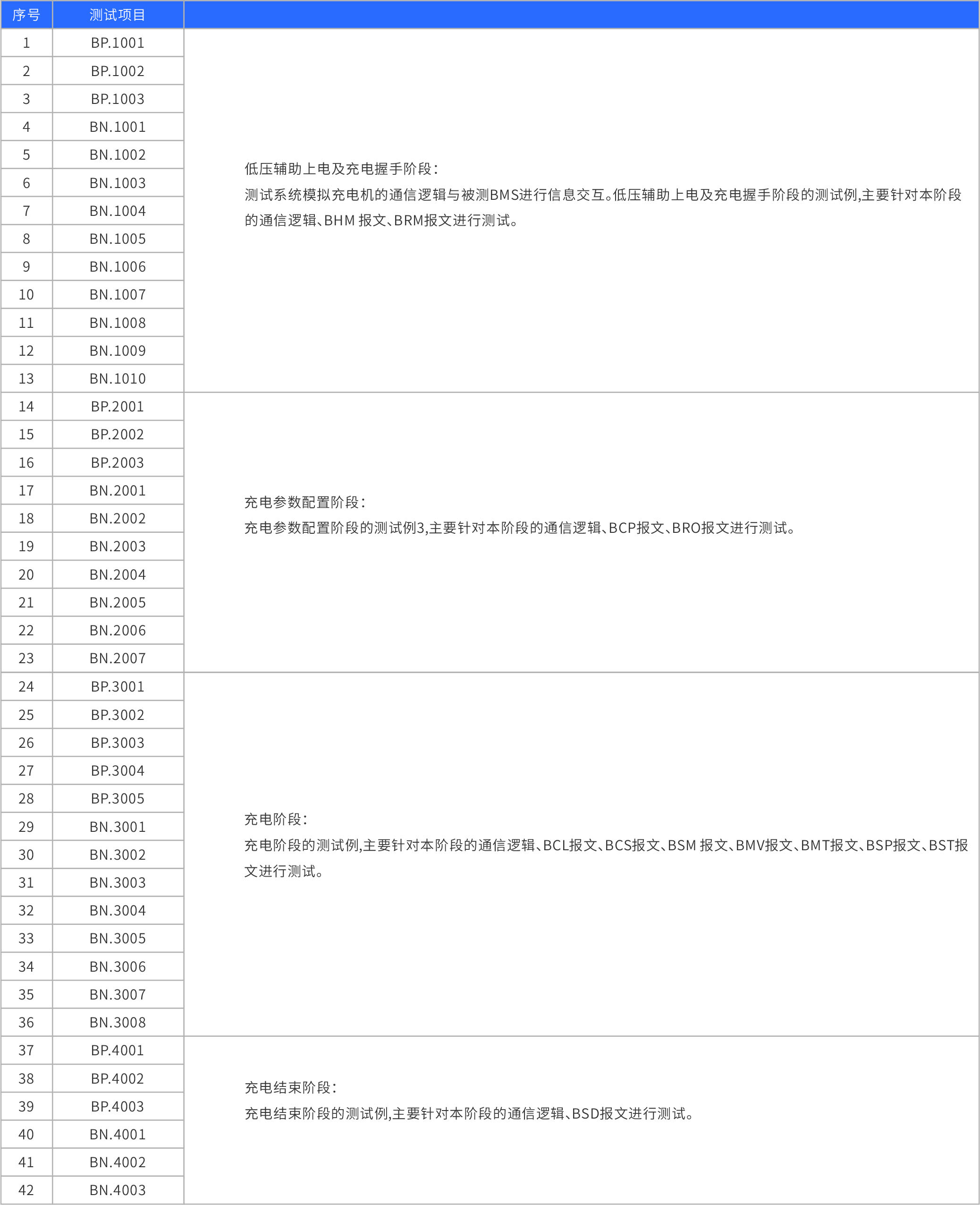 • 满足《GB/T 34658-2017电动汽车非车载传导式充电机与电池管理系统之间的通信协议一致性测试》中关于车辆(EVCC)的所有测试项目