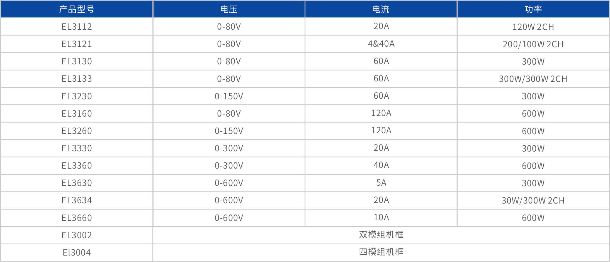 • 双通道模组(EL3112/EL3121),单机框可提供8路负载