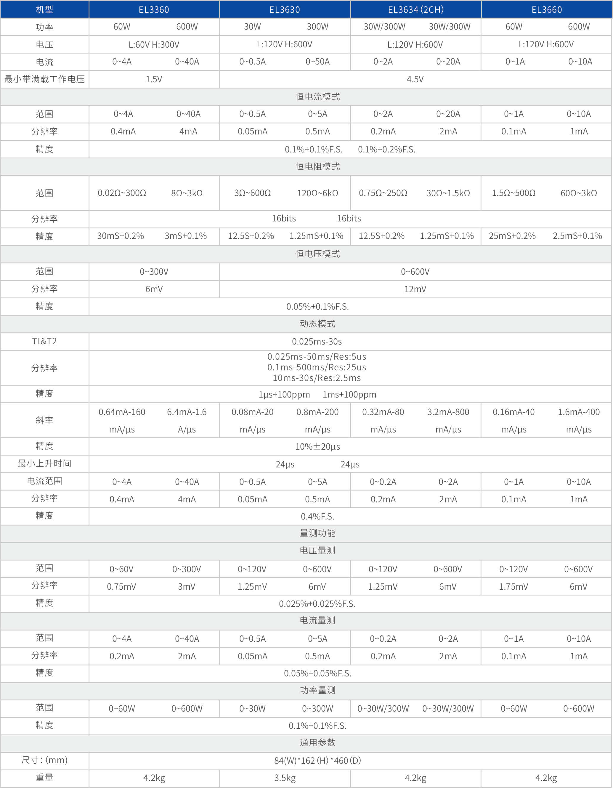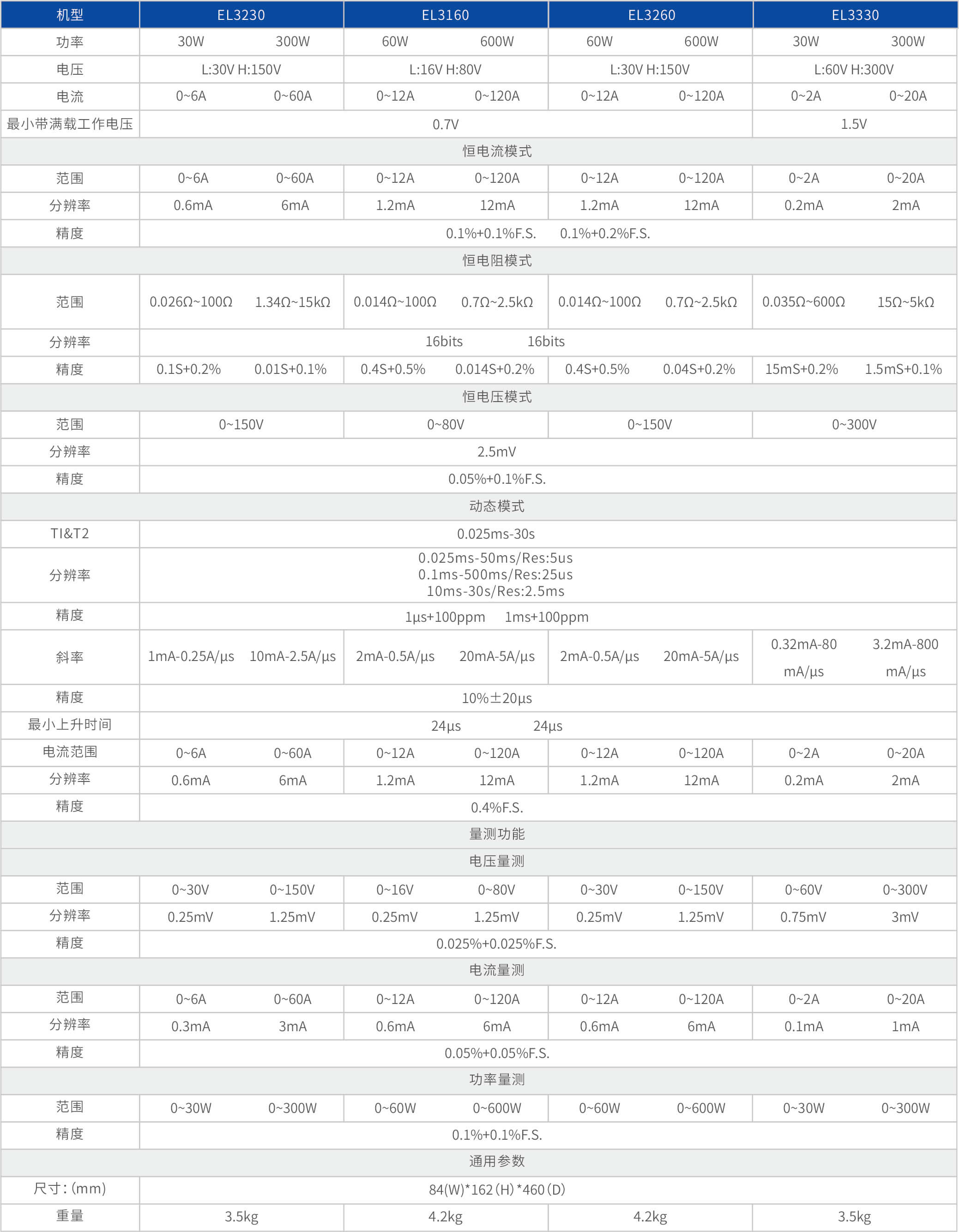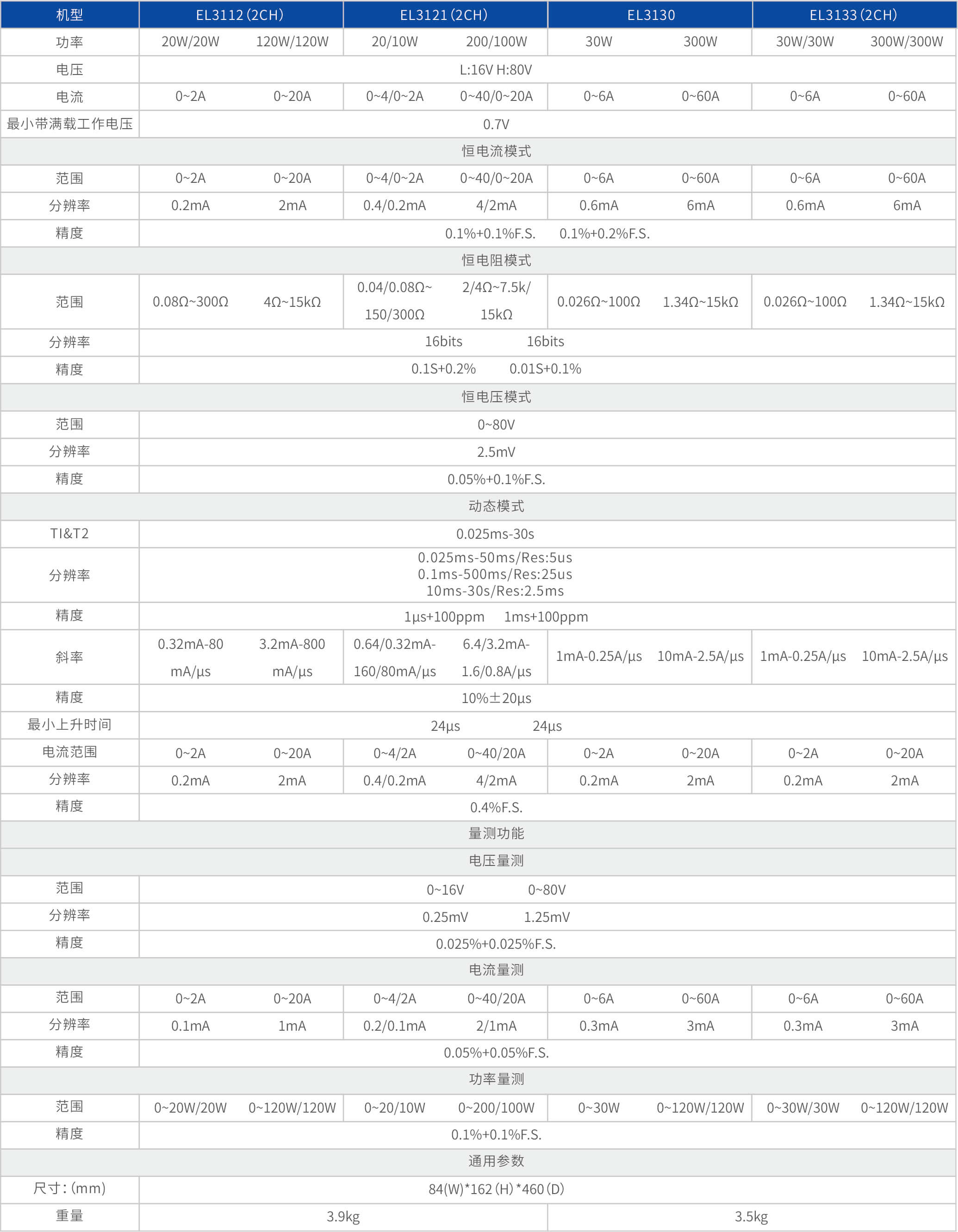 • 脉冲负载模拟功能,最小维持时间到ms级