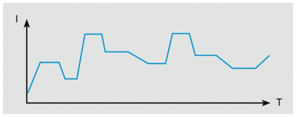 • 内建255组可编程负载时序,供使用者模拟各种不同的真实拉载状况。可单一时序负载重复拉载与全部时序负载重复拉载,每个时序的最小时间为100毫秒(ms),解析度为100毫秒,以下举例说明一般常见的编程时序应用。
