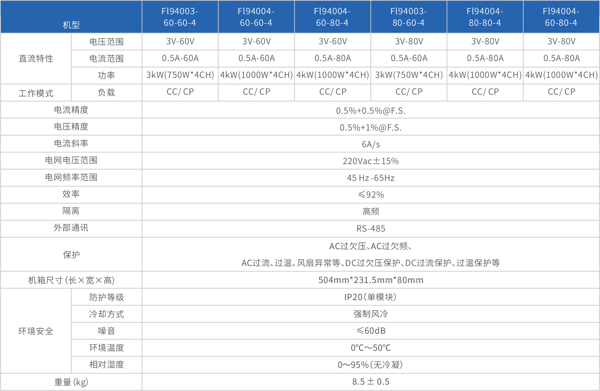FL94系列直流电子负载,是一款回馈式的功能模块,它具有4个完全隔离的DC输入通道,单台机就能实现高达320A放电,能源回收效率最高可达92%。