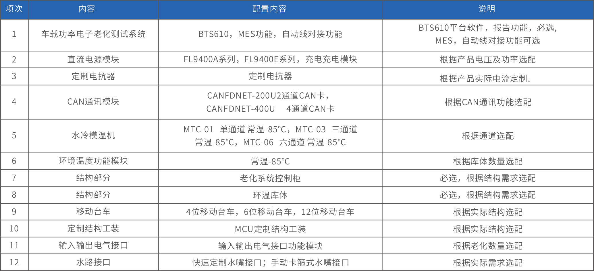 电机驱动器MCU台车式环温老化系统BTS610, 集成高压直流电源模块,使用电抗器无功老化,节约老化成本。每个产品配置独立旋变和通讯功能模块,支持一对一通讯控制,真实还原实际工作场景老化。支持环境温度、冷媒温度、冷媒流量、冷媒压力等参数客户自定义,满足不同用户老化需求,覆盖范围广。老化系统支持数据一对一读取和保存,标准化MES功能对接模块,数据可溯源。应用于MCU产品研发耐久,生产老化测试。