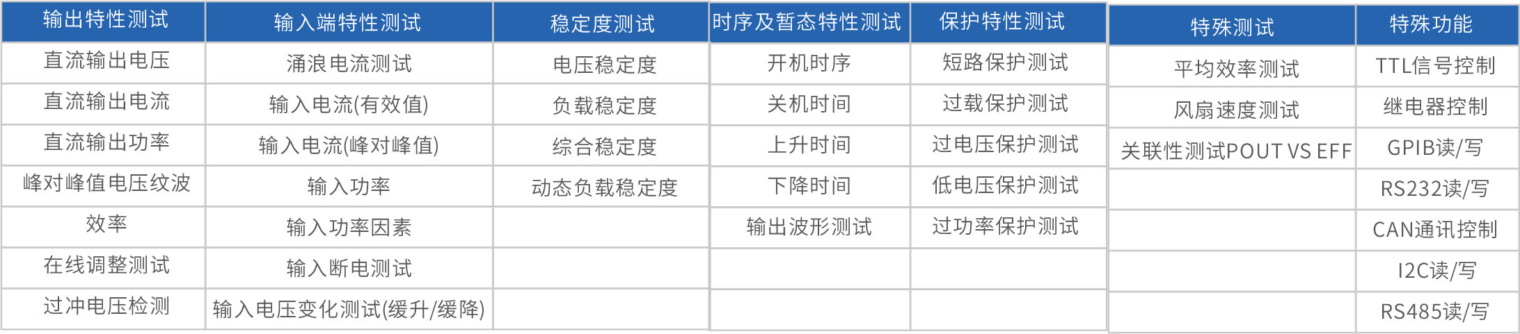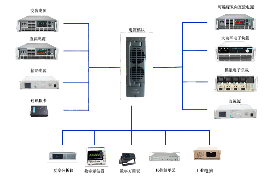 通用电源功能测试系统ATS310,适用于各类电源的自动化测试,提供各种设备硬件选择,集成交流电源、直流电源、功率分析仪、时序/噪声分析仪、示波器等。结合模块化测试系统平台ATS300,给用户提供开放性弹性应用,功能强大,节约人力成本,提升产品品质,可满足任何形式的电源测试需求。可根据功率选配不同功率等级设备,支持各类电源产品。其开放性模块化功能设计可以满足生产、研发,品质各类测试需求。
