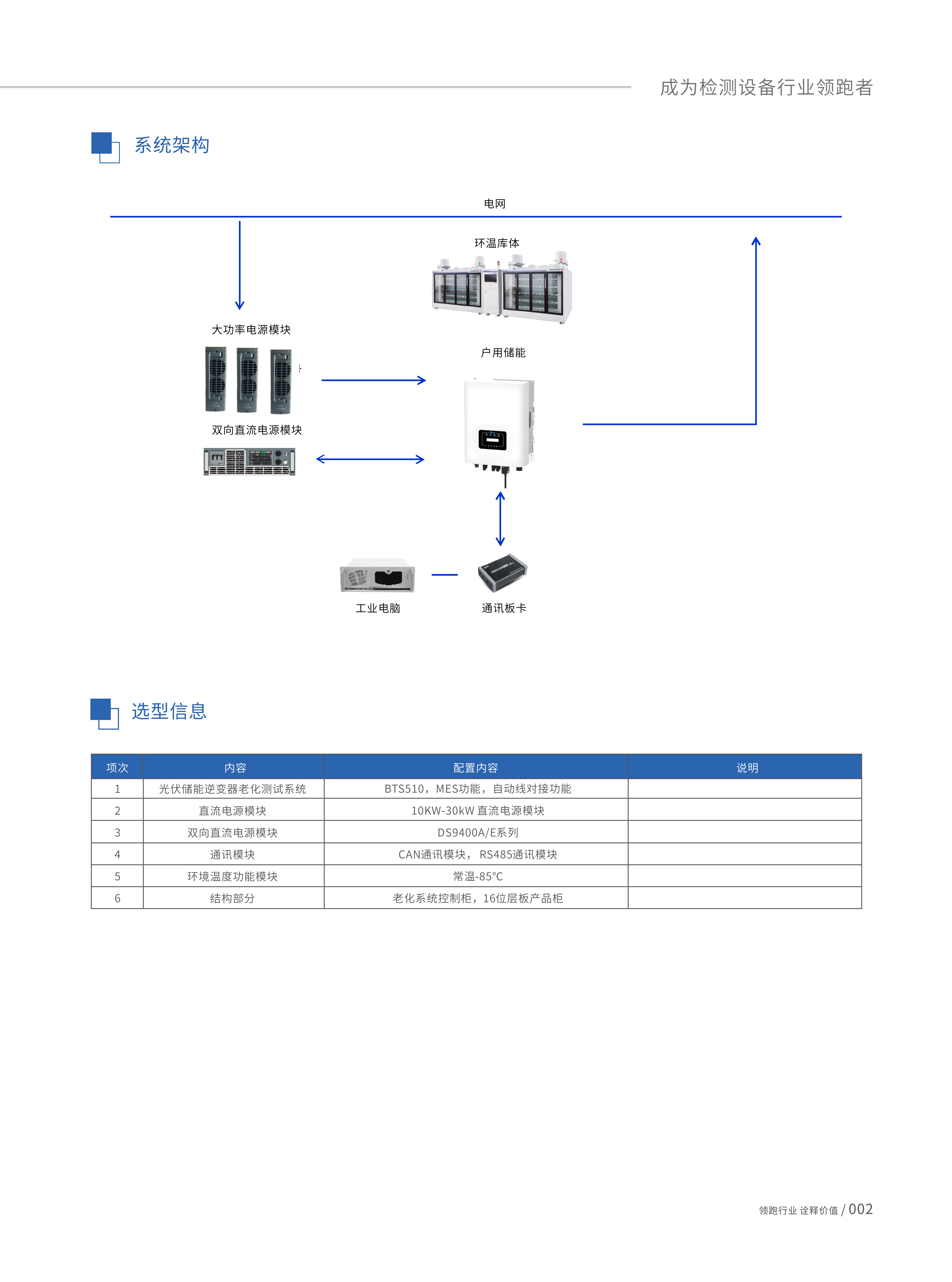 - ⼾储层板式层板式环温⽼化测试系统BTS510集成⼤功率直流电源模块置独⽴通讯功能模块,⽀持⼀对⼀通讯 控制,真实还原实际⼯作场景⽼化。⽀持环境温度等参数客⼾⾃定义,满⾜不同⽤⼾⽼化需求,覆盖范围⼴。⽼