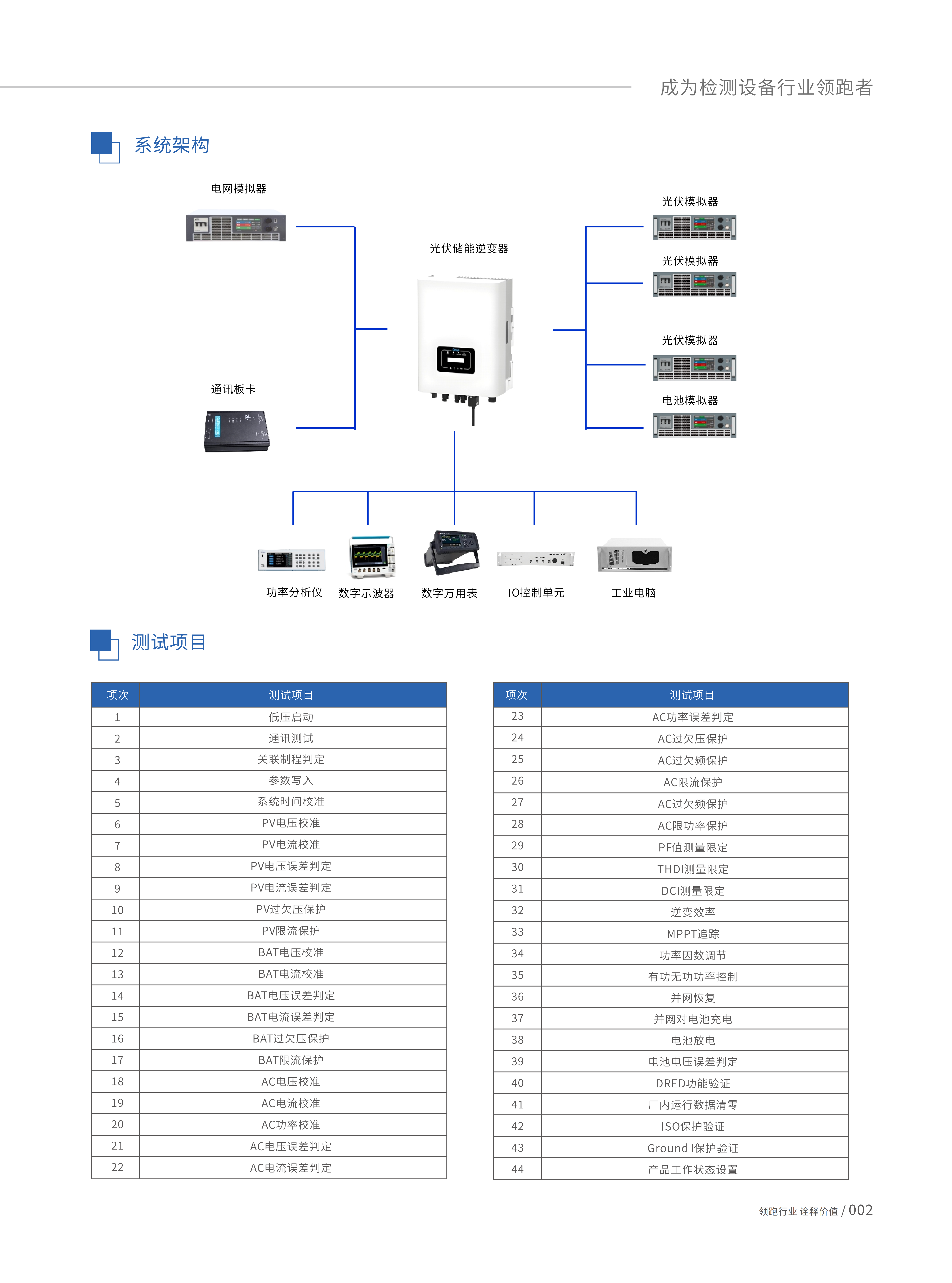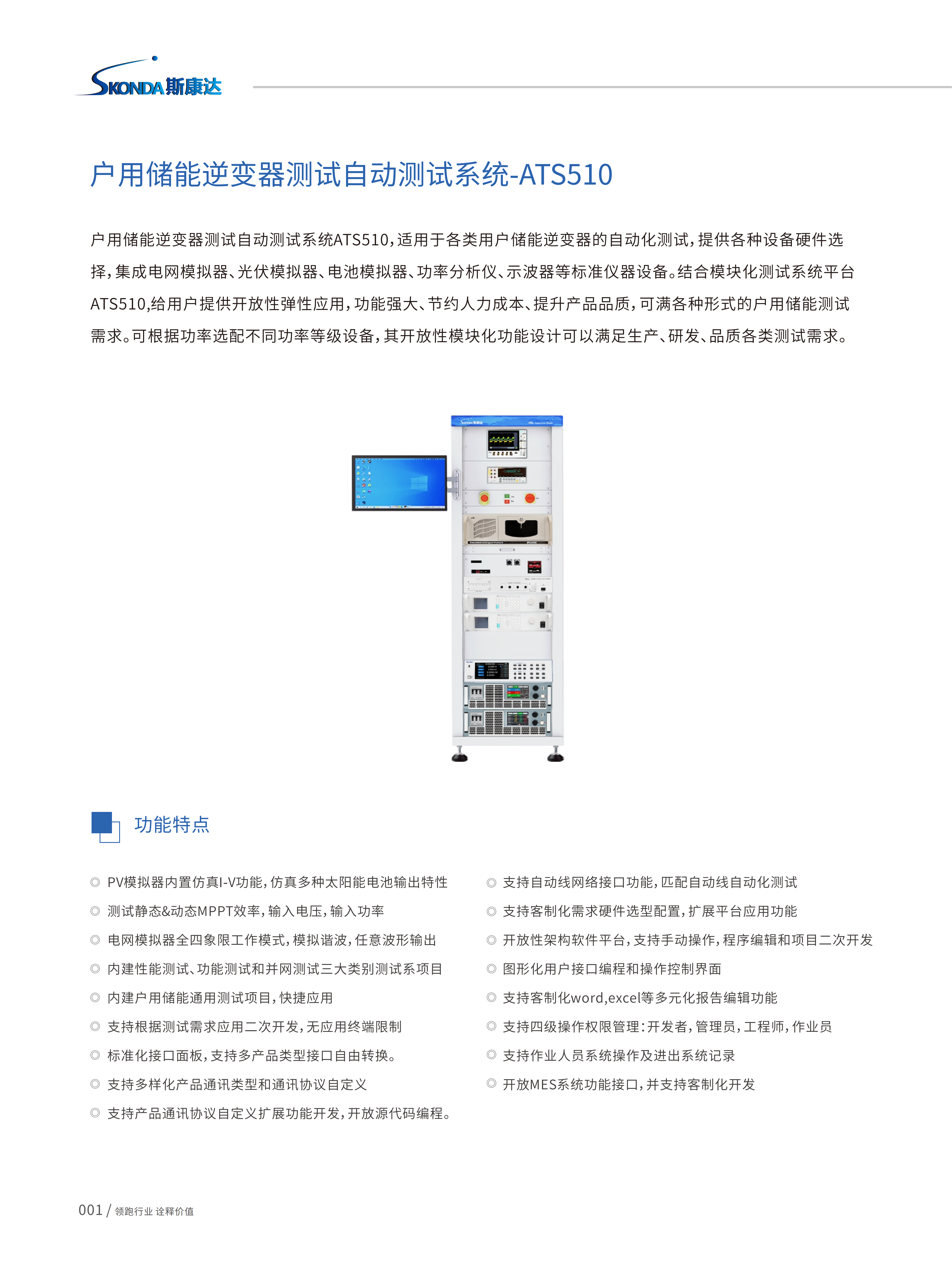 ⼾⽤储能逆变器测试⾃动测试系统ATS510,适⽤于各类⽤⼾储能逆变器的⾃动化测试,提供各种设备硬件选 择,集成电⽹模拟器、光伏模拟器、电池模拟器、功率分析仪、⽰波器等标准仪器设备。结合模块化测试系统平台 ATS510,给⽤⼾提供开放性弹性应⽤,功能强⼤、节约⼈⼒成本、提升产品品质,可满各种形式的⼾⽤储能测试 需求。可根据功率选配不同功率等级设备,其开放性模块化功能设计可以满⾜⽣产、研发、品质各类测试需求。